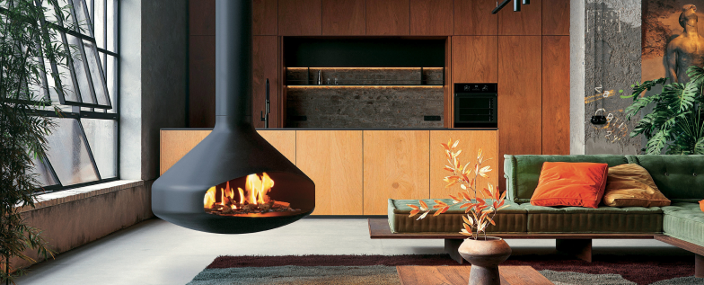Pour les amateurs de design unique, nous installons également les célèbres cheminées suspendues FOCUS, véritables pièces d’art fonctionnelles.